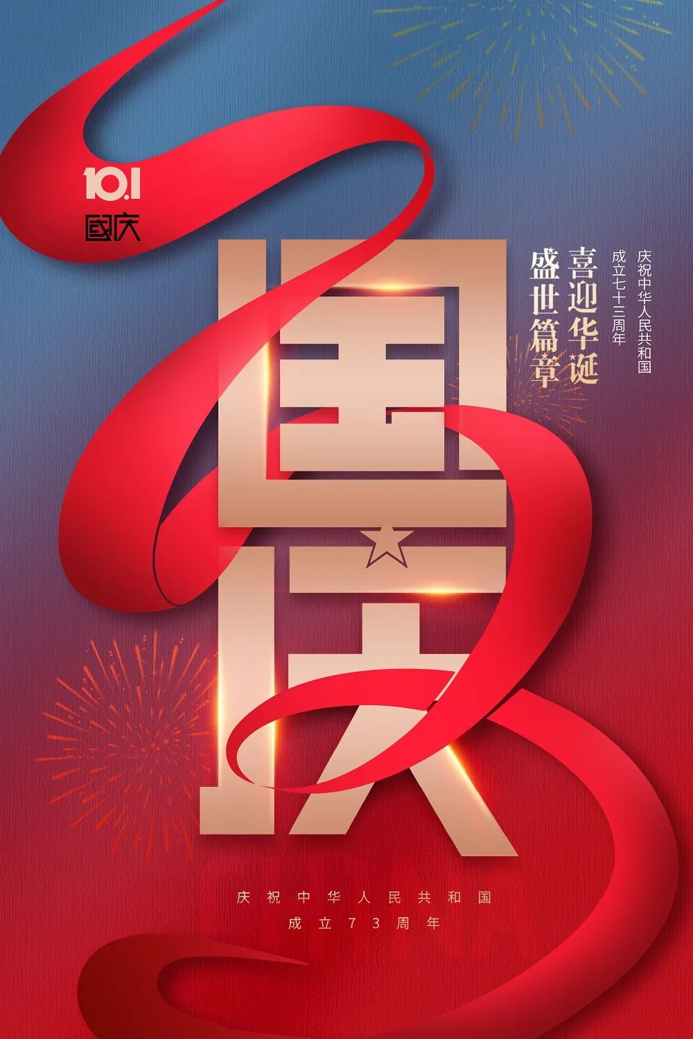 花團錦繡擁金秋,萬里河山迎國慶;張燈結彩慶豐收,龍飛獅舞鬧歡騰;禮炮繽紛展盛世,載歌載舞享和諧。各族兒女共祝福,祖國繁榮富又強,國泰民安再輝煌。