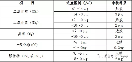 (6)因儀器設備故障、運行不穩(wěn)定或其他監(jiān)測質(zhì)量不受控原因出現(xiàn)的負值和零值,均按無效數(shù)據(jù)處理。在空氣中各項污染物濃度均處于極低水平的情況下,部分儀器設備小時監(jiān)測結(jié)果出現(xiàn)負值或零值時,需人工判別:在確認非儀器故障的前提下,當監(jiān)測值超過可控范圍時,按無效處理;當監(jiān)測值在可控范圍時,應按規(guī)定進行修約。處理方式詳見附件中表1。