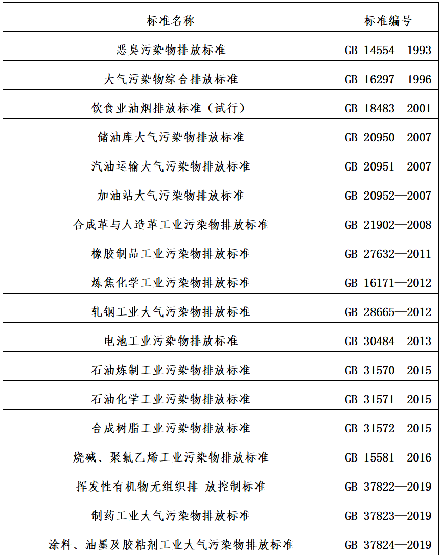 18項VOCs相關國家排放標準