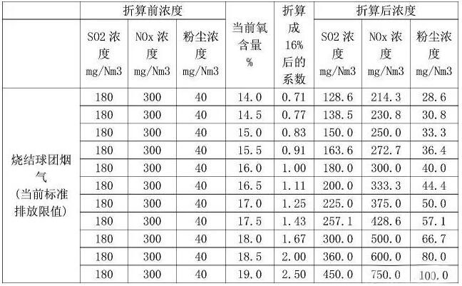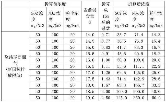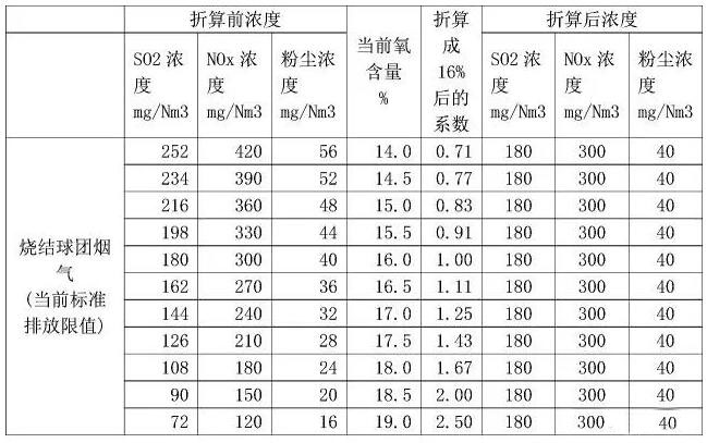 4)對(duì)于帶式焙燒機(jī)而言,濃度按氧含量16%折算并不科學(xué),因?yàn)閹奖簾龣C(jī)的排氣量包括了冷卻廢氣,而燒結(jié)機(jī)的廢氣并沒(méi)有包括環(huán)冷廢氣。帶式焙燒機(jī)應(yīng)該按18.5%折算為科學(xué)。