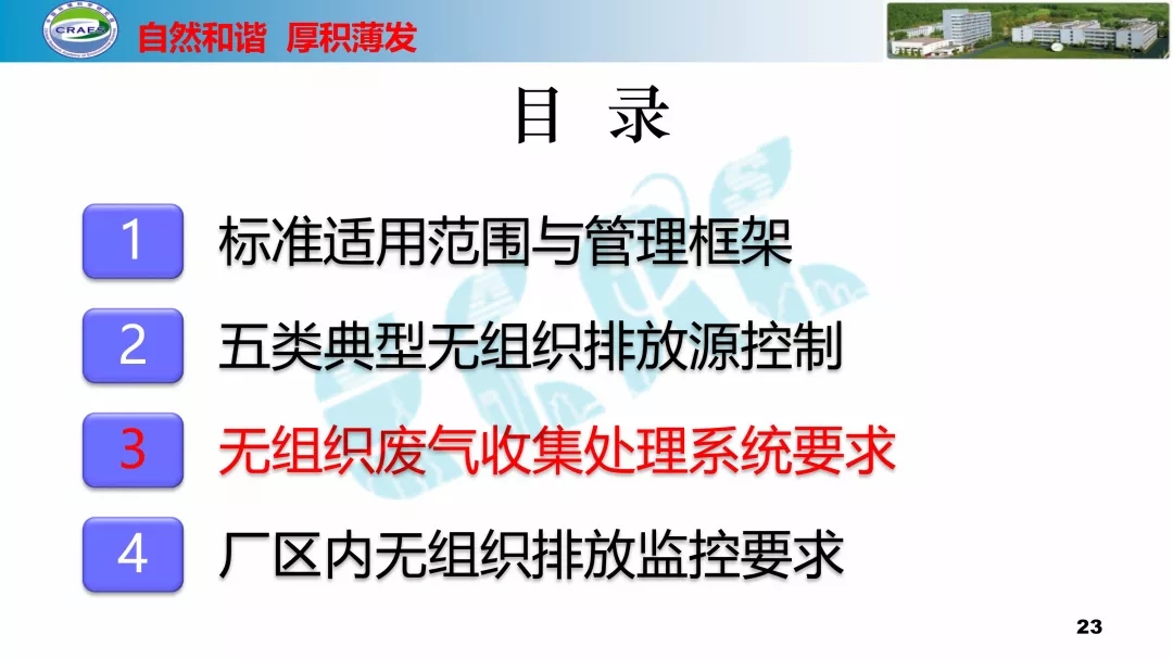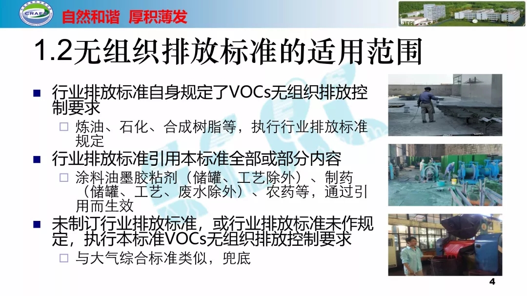 主要包括:標準適用范圍與管理框架、五類典型無組織排放源控制、無組織廢氣收集處理系統要求、廠區內無組織排放監控要求等四方面的內容。
